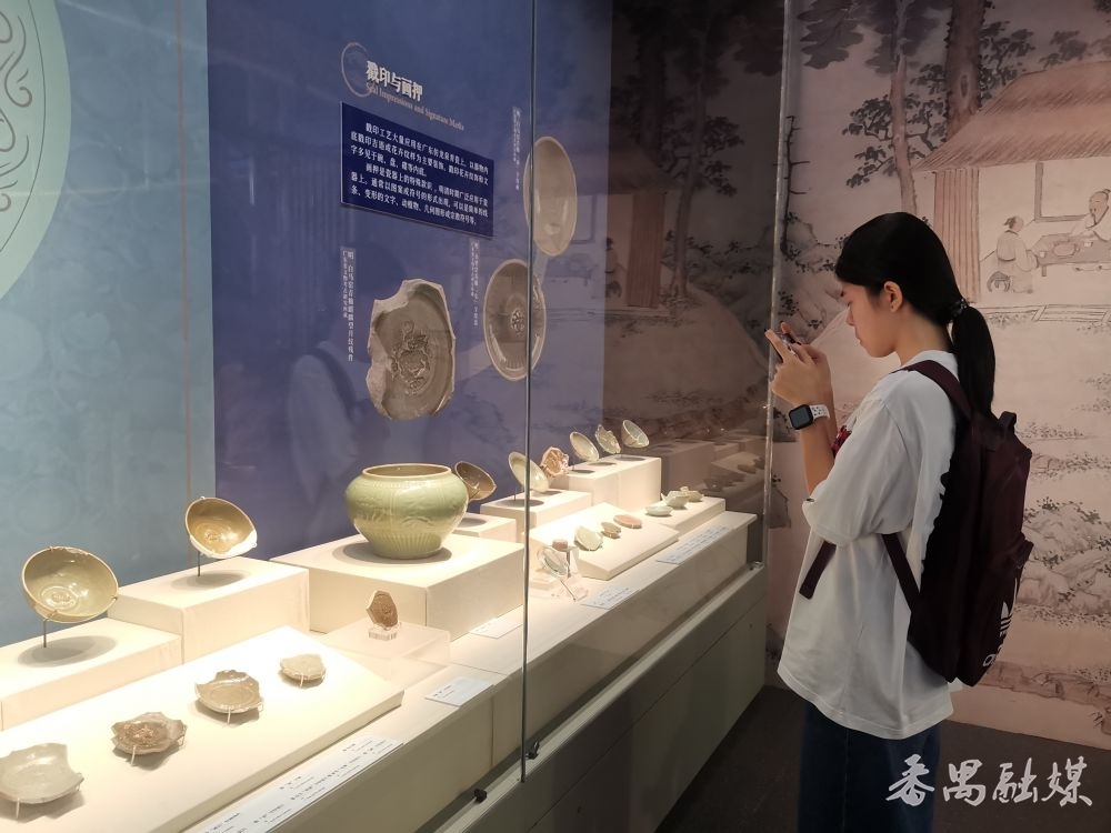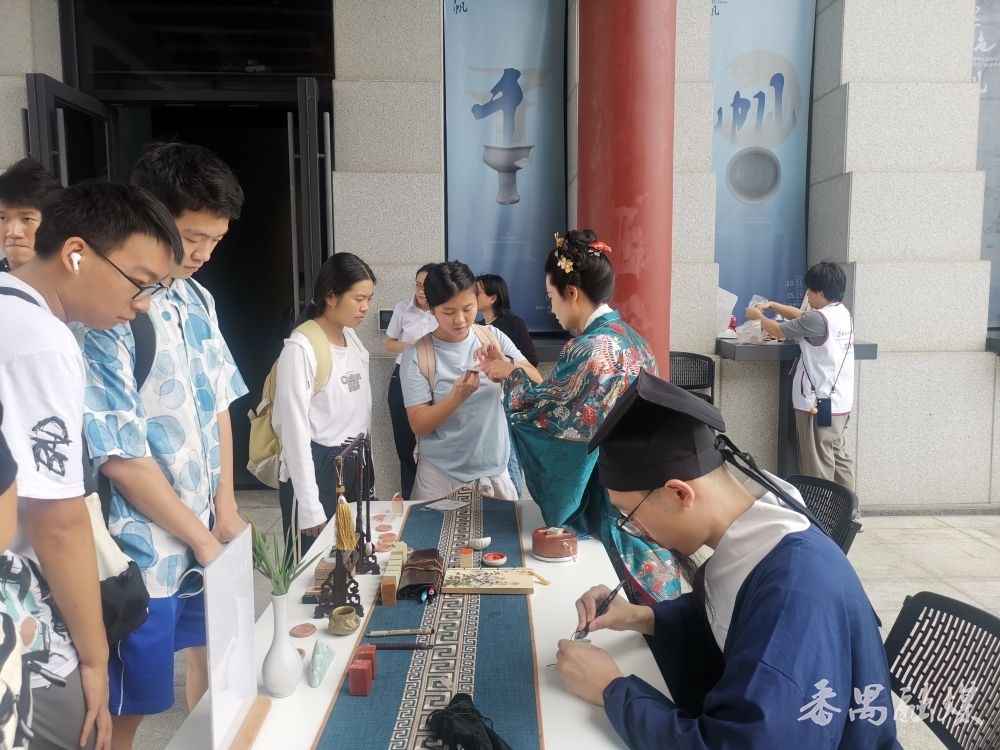 馆方同步研发四款海丝青瓷主题文创,将历史韵味融入日常生活。此外,展览策划“海丝瓷韵”系列教育项目,与广州美术学院、非遗传承人等合作,开展仿龙泉青瓷制作等活动,邀请观众沉浸式体验陶瓷文化魅力。开幕式现场互动体验区,志愿者展示篆刻技艺,观众亲手拓印制作青瓷纹样冰箱贴,留下美好记忆。