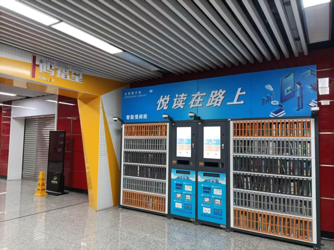 快递借书中亦可选择到位于地铁2号线市民中心站的G出口的智能借阅柜(包括1号和2号智能借阅柜,其中2号柜空余位置较多)凭读者证或读者证二维码现场取书。